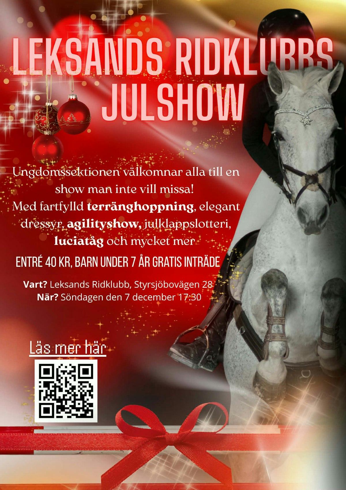 US bjuder in till årets julshow – en härlig kväll fylld med hästar, julstämning och överraskningar! Söndag 7 december Start kl. 17:30 - kom i tid, finns begränsat med platser!