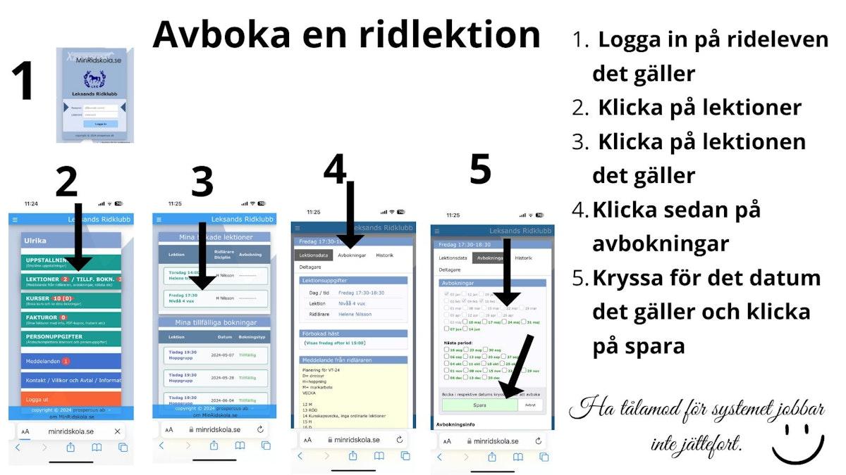- Igenridningen måste ridas igen under samma termin. Det betyder vet du att du inte kan vara med de sista gångerna så avboka direkt. För direkt du avbokat ett datum kan du rida igen det, även om det ligger i framtiden.